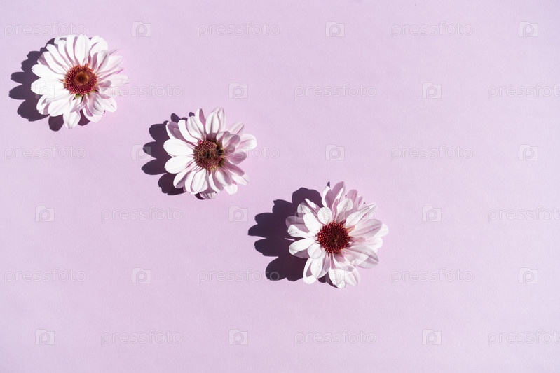 Узор из фиолетовых цветов хризантемы на фиолетовом фоне, плоская планировка