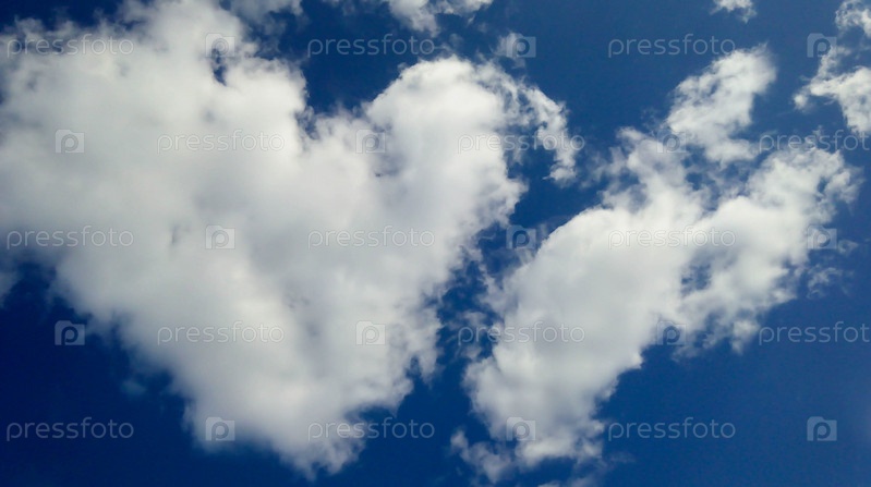 Облако в форме сердца. Фигура облаков в небе. День Святого Валентина. Пушистое кучевое облако похоже на сердце. Символ Дня святого Валентина