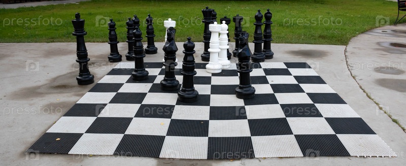 Гигантские черно-белые шахматы в общественном месте в парке