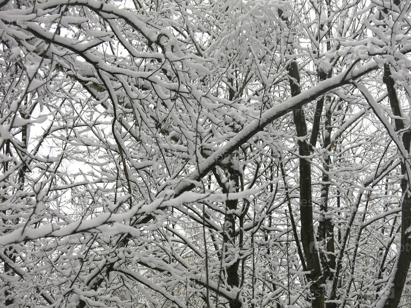 Красиво заснеженные ветви деревьев после снегопада