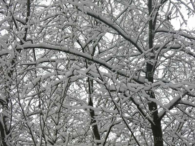 Красиво заснеженные ветви деревьев после снегопада