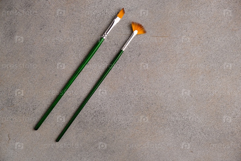Две синтетические кисти на абстрактном сером фоне. Место для надписей и дизайна