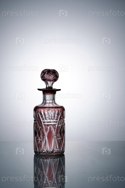 Красивый стеклянный флакон для парфюмерии. Богемский хрусталь. Крупный план. Копипространство