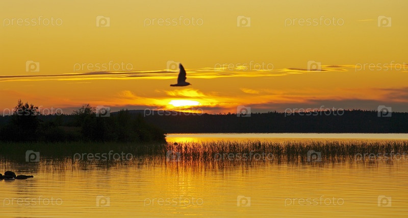 Заход солнца на Канозере. Река Умба, Кольский полуостров, Мурманская область. Август