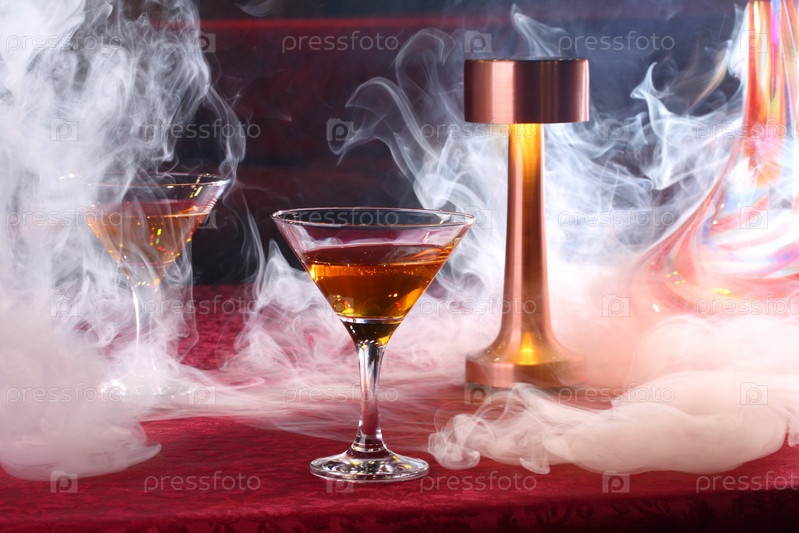 Дымящиеся коктейли на красной скатерти