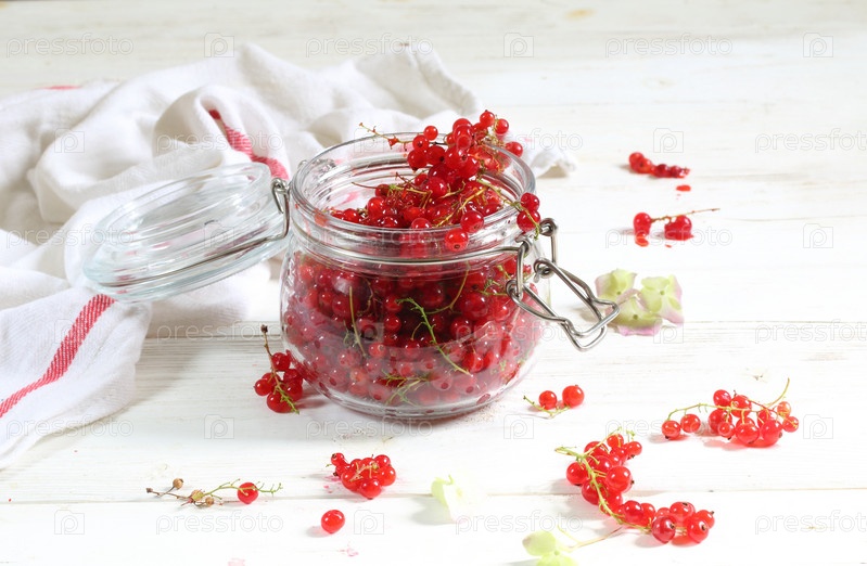 Десерт из творога с чиа, клубникой и смородиной на белом фоне