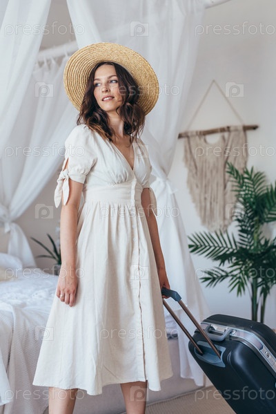 Женщина-туристка вошла в свой гостиничный номер