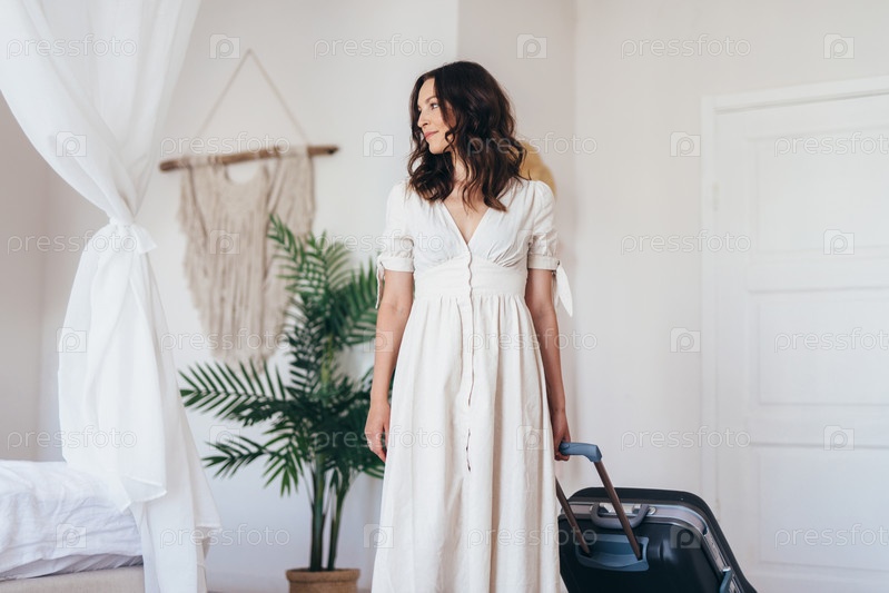 Женщина-туристка осматривает гостиничный номер после регистрации
