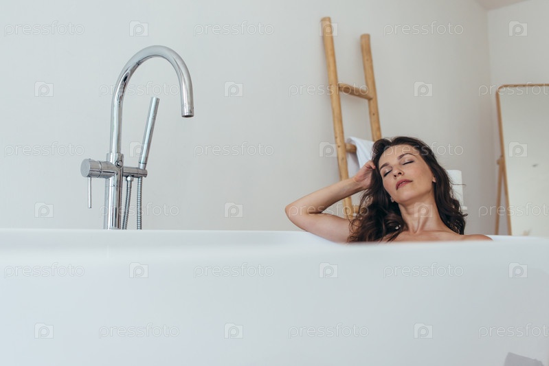 Купающаяся женщина отдыхает в ванне с закрытыми глазами