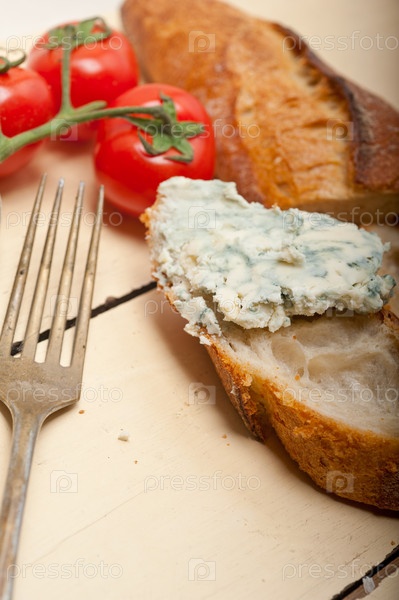 Французский багет, намазанный свежим голубым сыром
