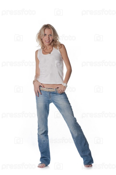 Симпатичная блондинка на белом фоне