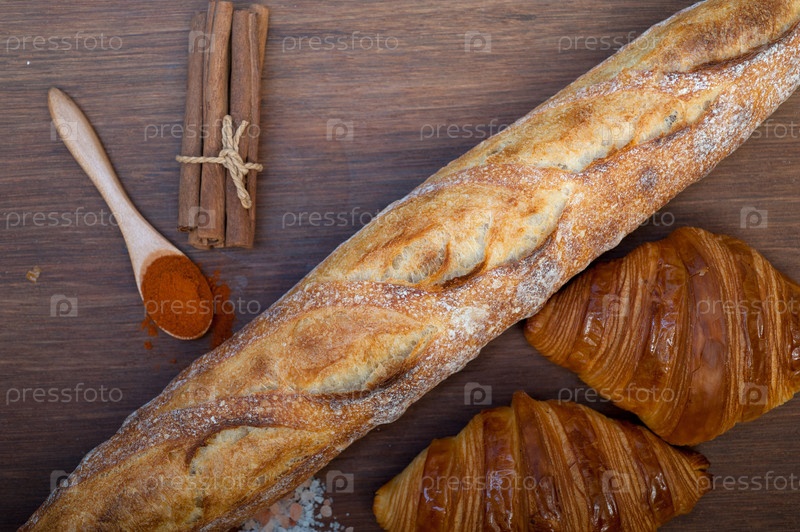 Французские свежие круассаны и традиционный багет ручной работы