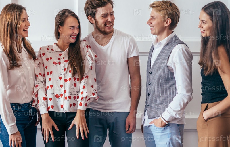 Портрет молодых людей, стоящих вместе и улыбающихся