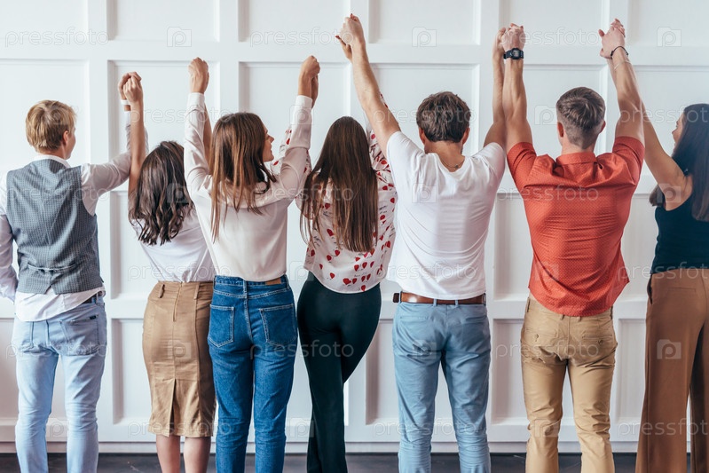 Вид сзади на людей, держащихся за руки. Вместе мы сильнее