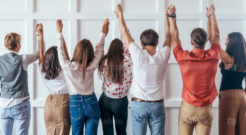 Вид сзади на людей, держащихся за руки. Вместе мы сильнее