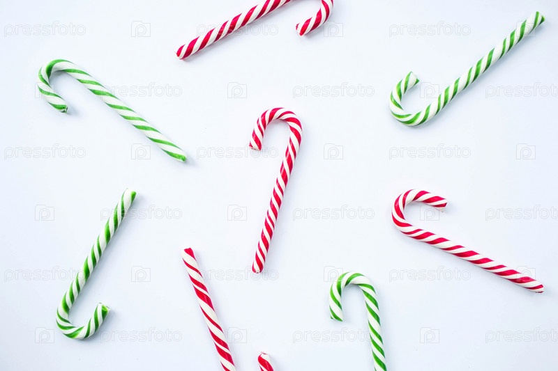 Рождественские конфеты леденец шаблон, изолированные на белом фоне. Плоская планировка, вид сверху, пространство для копирования. Рождество, зима, новый год концепции. Рождественская композиция для дизайна