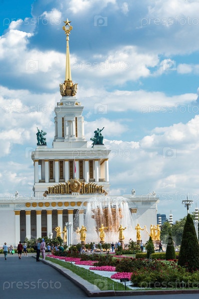 Москва, Россия. ВДНХ или ВДНХ Выставка Достижений Народного Хозяйства, Павильон 1 Центральный