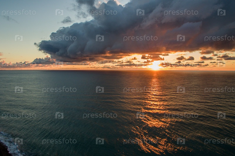 Вид с воздуха на морской пейзаж с красивым закатом