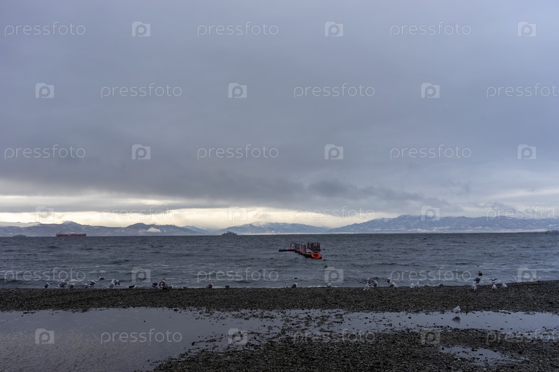 Морской пейзаж с береговой линией пляжа в Петропавловске-Камчатском