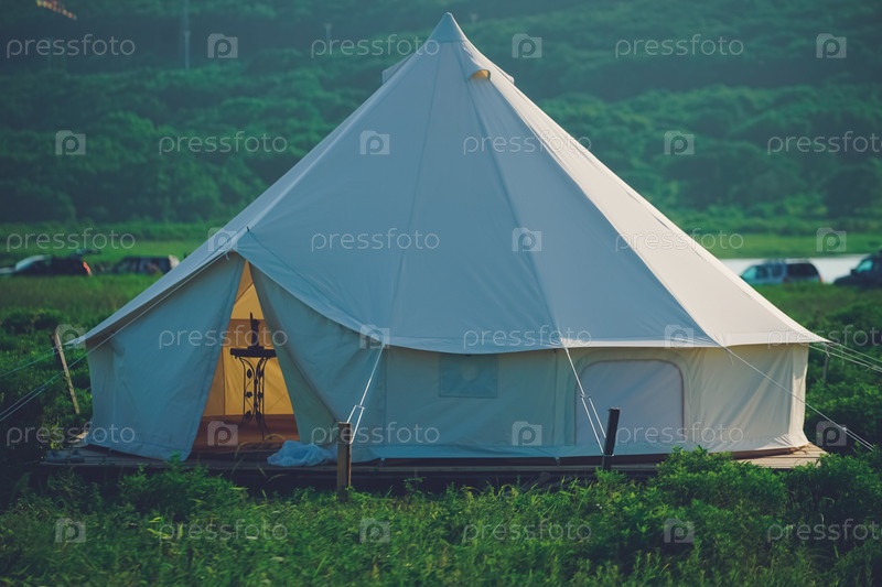 Белая палатка на фоне природного ландшафта