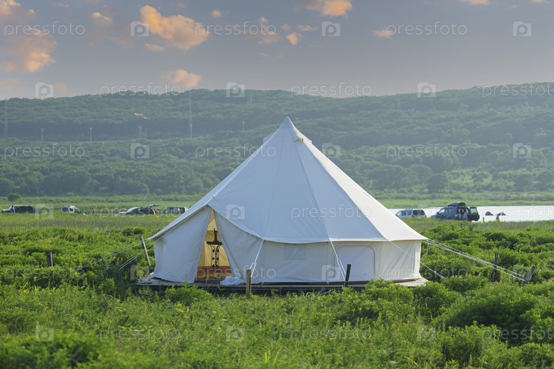 Белая палатка на фоне природного ландшафта