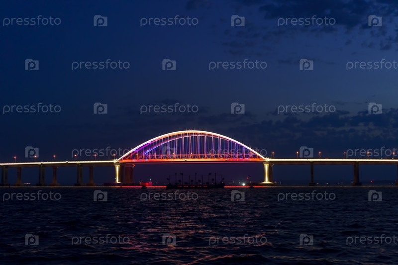 Морской пейзаж с видом на иллюминацию Крымского моста