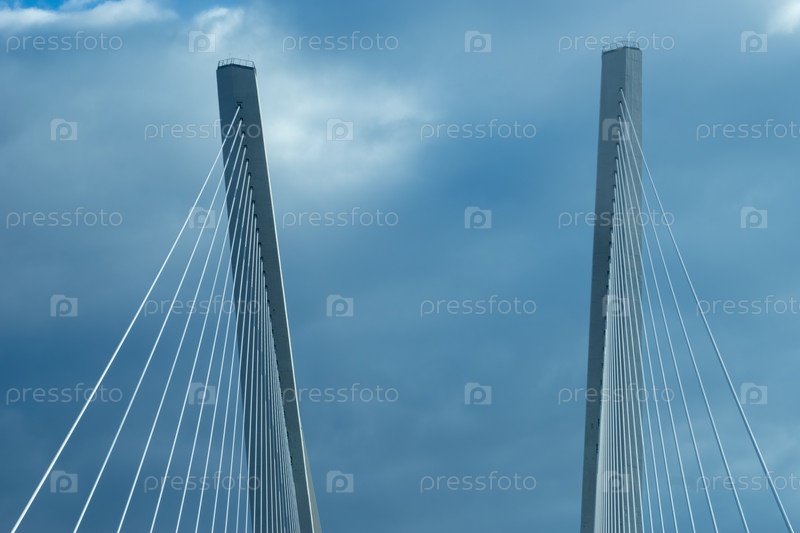 Строительство Золотого моста на фоне голубого неба