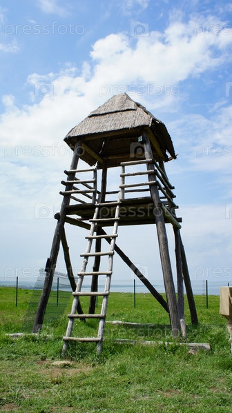 Пейзаж с деревянной башней на фоне природы