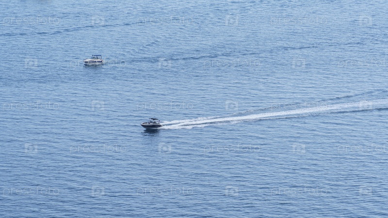 Морской пейзаж с лодками на поверхности воды