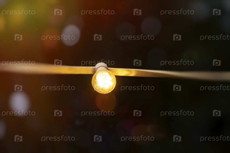 Желтые лампочки на размытом фоне с боке