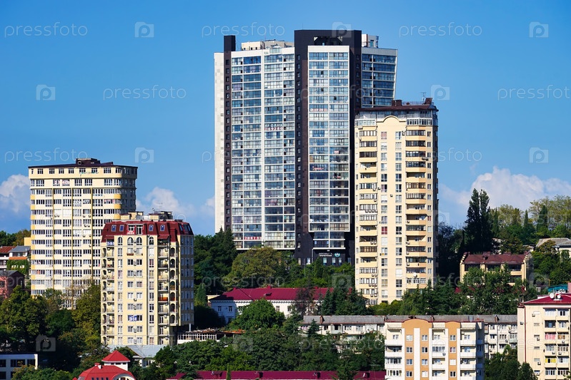 Городской пейзаж с видом на здания и архитектуру. Сочи