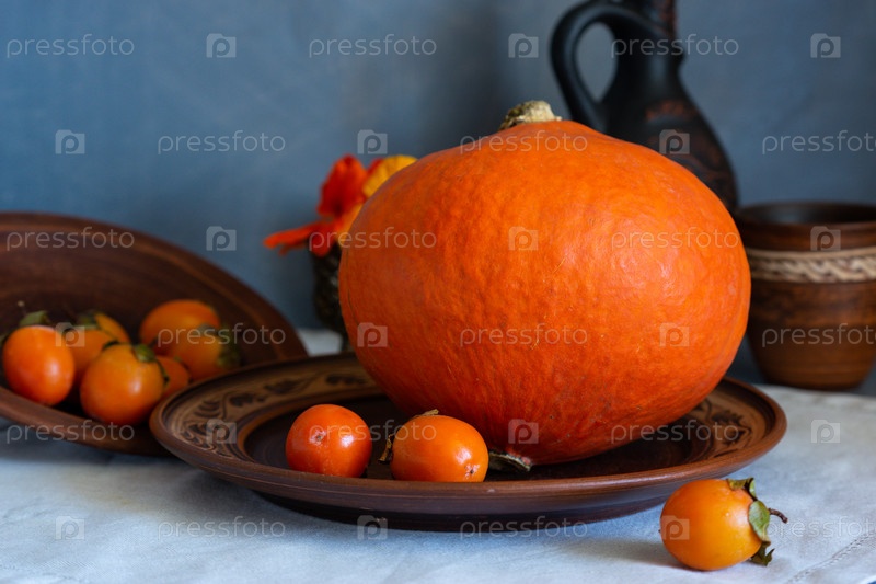 Осенний натюрморт с цветами тыквы и настурции