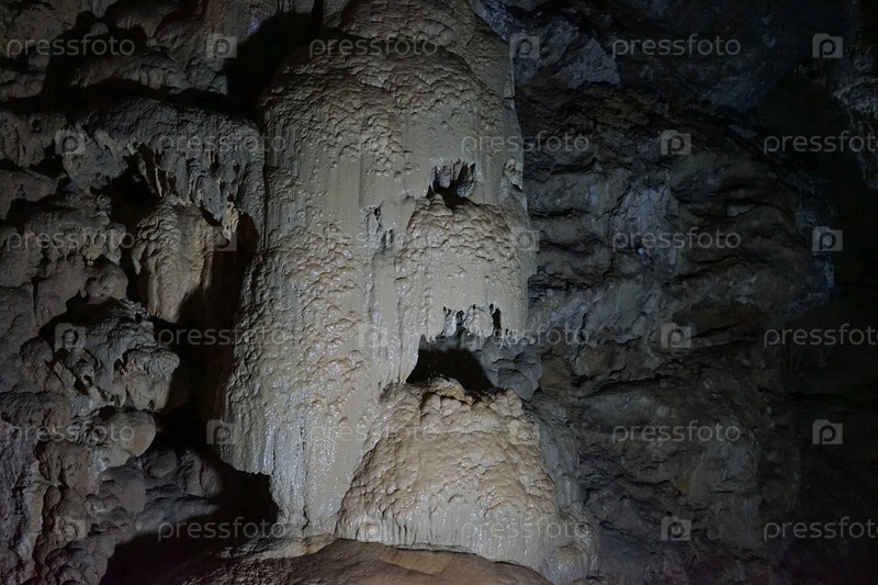 Подземные пещеры Абхазии. Сталактиты и сталагмиты в темноте