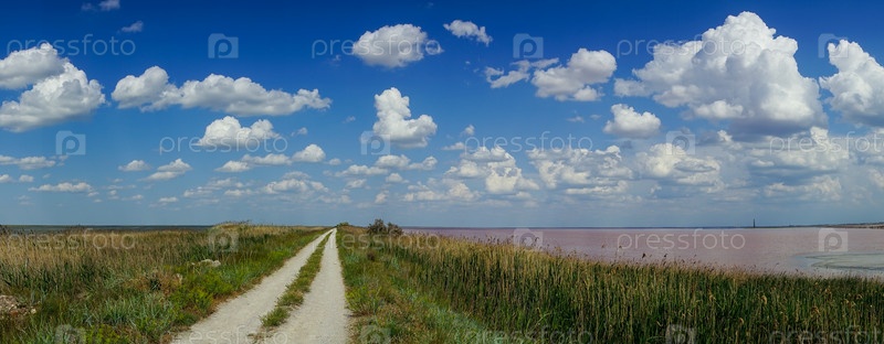 Природный ландшафт с розовым соленым озером