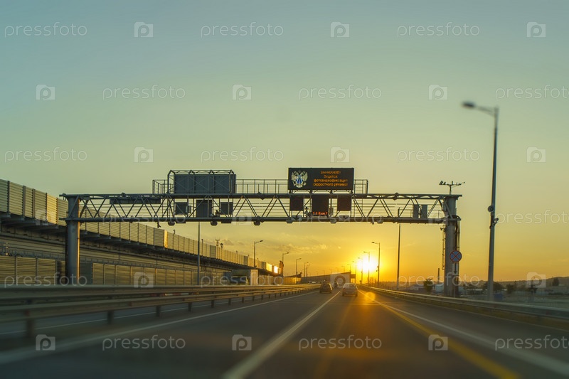 Пейзаж с автострадой на фоне заката