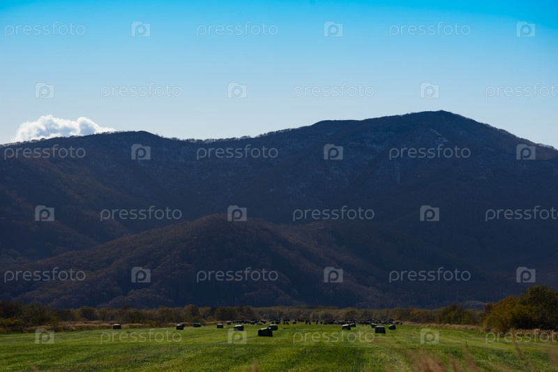 Природный ландшафт с полем на фоне гор