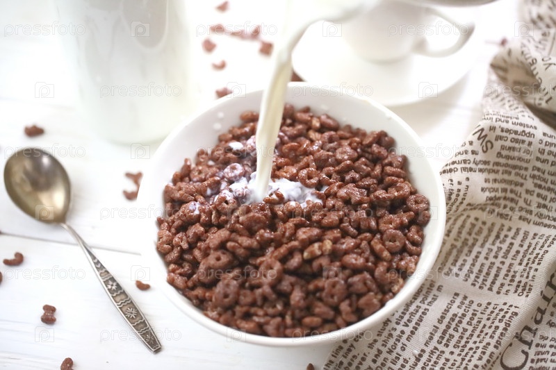 Шоколадные шарики с молоком и фруктами. Сухой завтрак