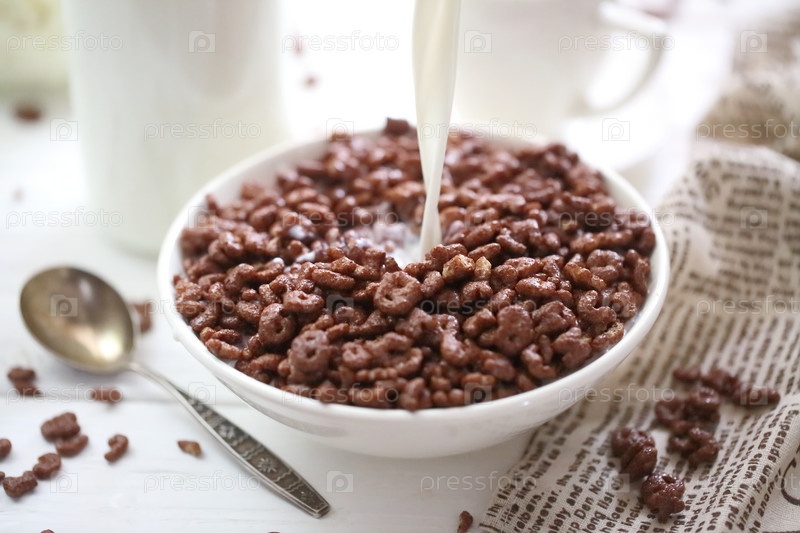 Шоколадные шарики с молоком и фруктами. Сухой завтрак