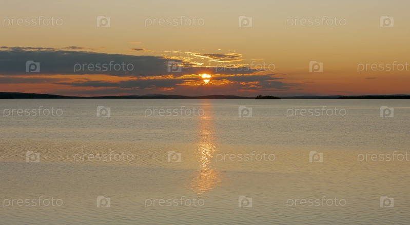 Заход солнца на Канозере. Река Умба, Кольский полуостров, Мурманская область. Август