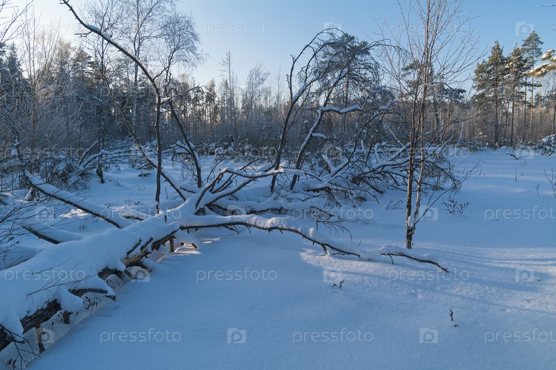 Торфяное болото зимой. Солнечный день в январе. Ближнее Подмосковье,