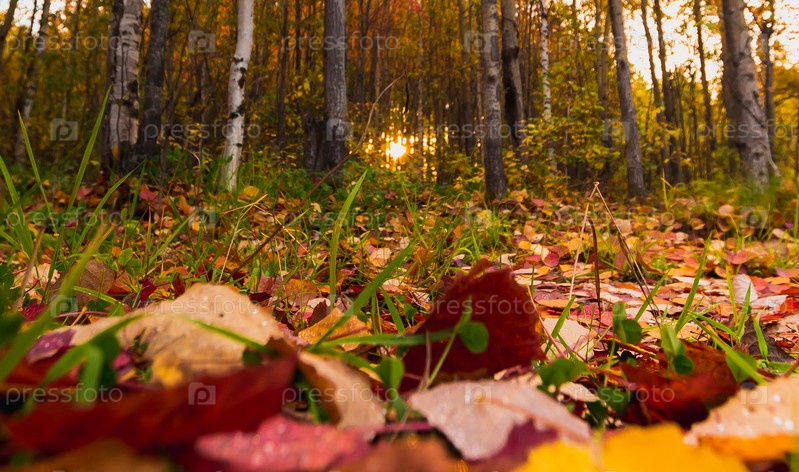 Рассвет в сентябре в осеннем лесу