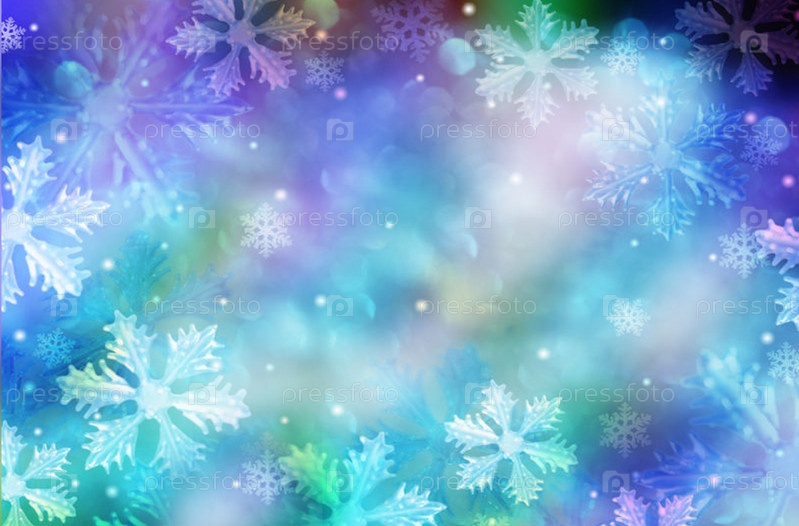 Красивый синий и розовый новогодний фон - снежинки, звезды, огни