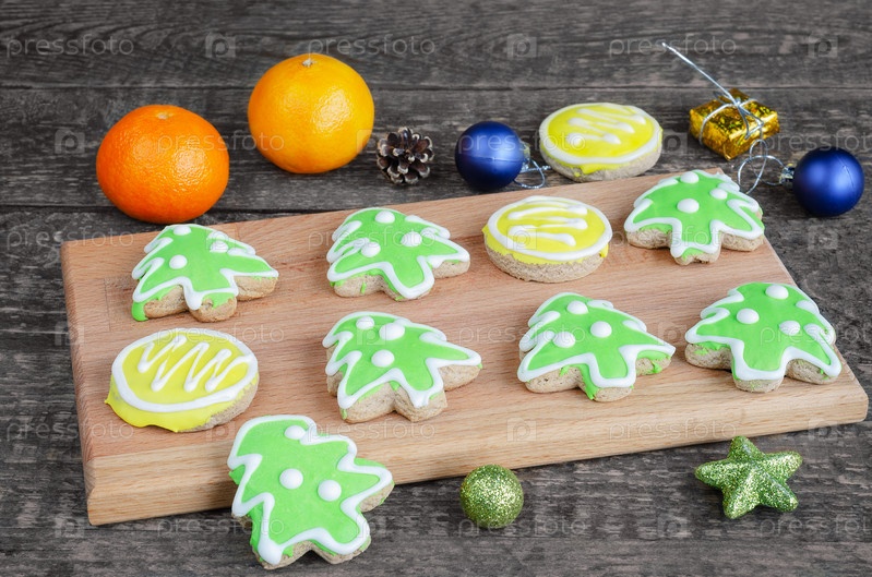 Глазированное рождественское печенье на разделочной доске