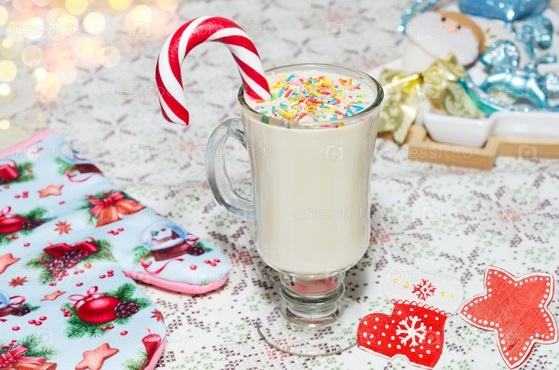 Домашний молочный коктейль с карамельной тростью на зимние праздники, выборочный фокус