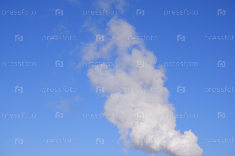 Белый дым на фоне голубого неба. Клубы белого дыма из трубы