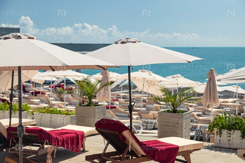 Отличные пляжные зоны с шезлонгами и зонтиками, расположенные близко к морю