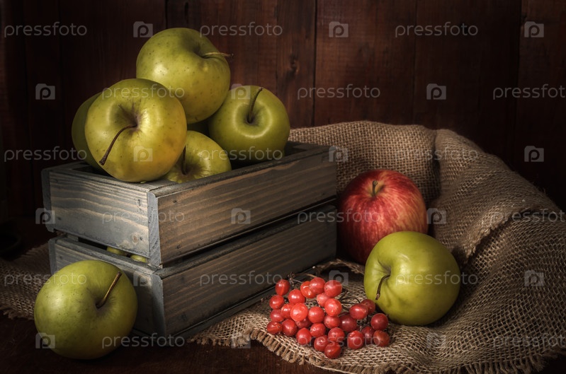 Яблоки и другие продукты на темном деревянном фоне в деревенском стиле
