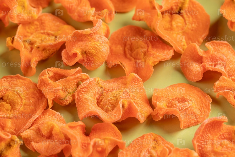 Крупный план оранжевых поперечных домашних морковных чипсов в качестве фона