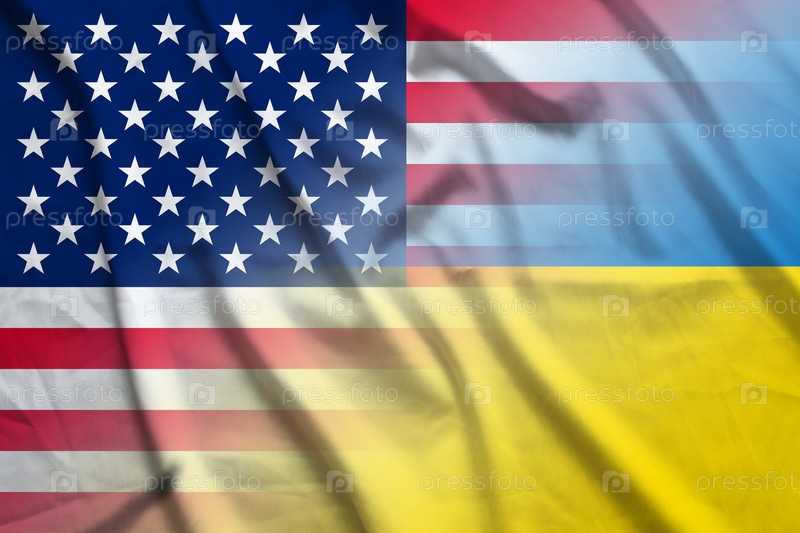 Государственный флаг США и Украины на международных переговорах UKR USA