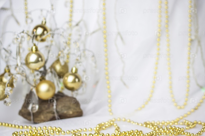 Новогодний фон с елкой, на которой висят маленькие золотые шарики. Выборочный фокус, картинка для фона. концепция Рождества и Нового года